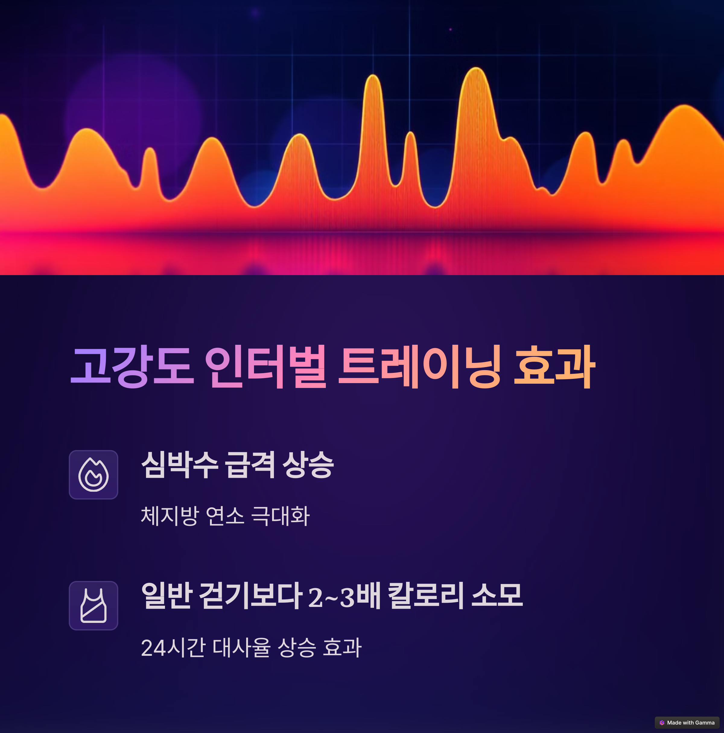- 고강도 인터벌 트레이닝(HIIT) 효과: 짧은 시간 내에 심박수를 급격히 올려 체지방 연소 극대화