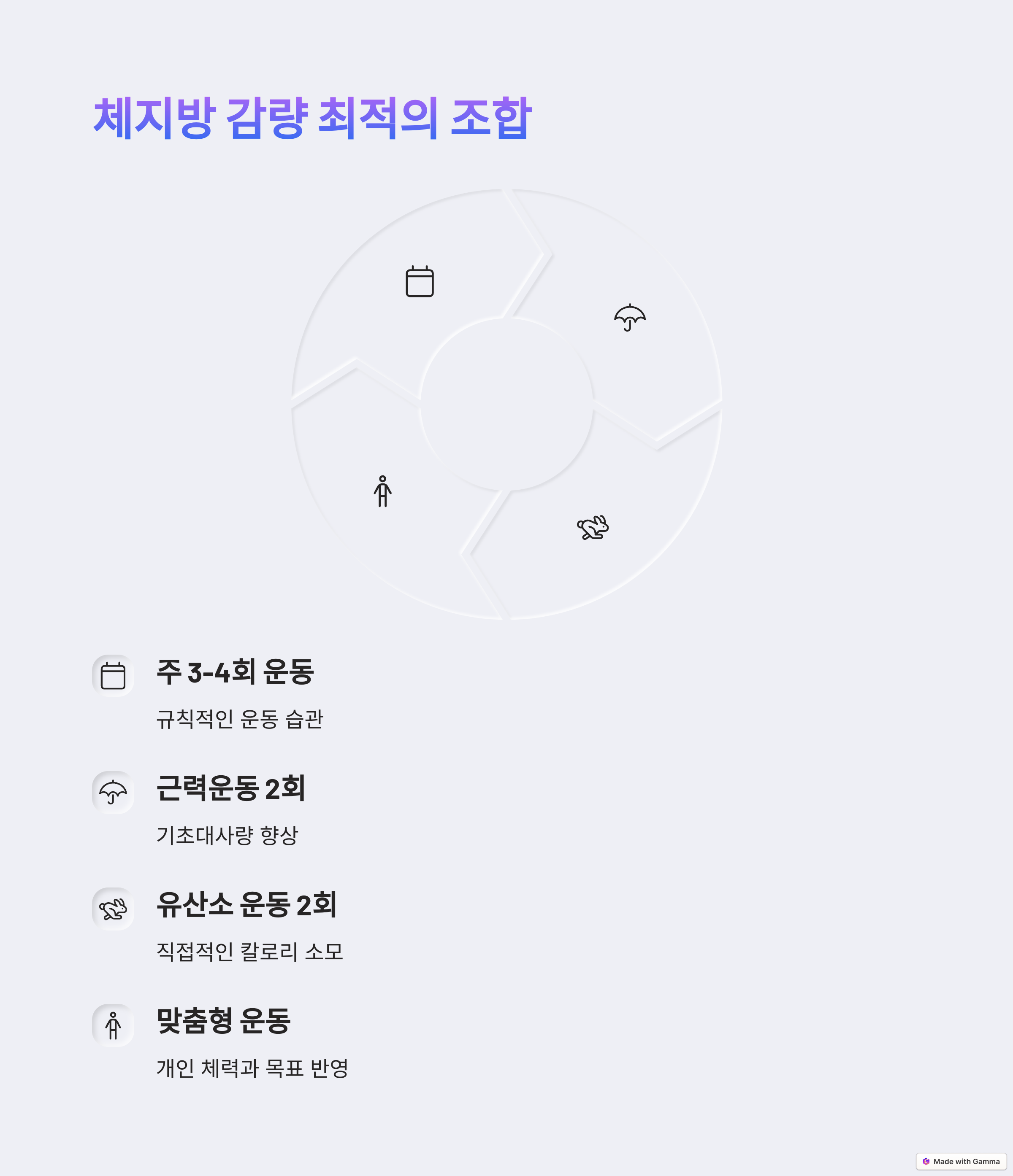 - ✅ 주 3~4회 HIIT + 근력운동 (20~30분)