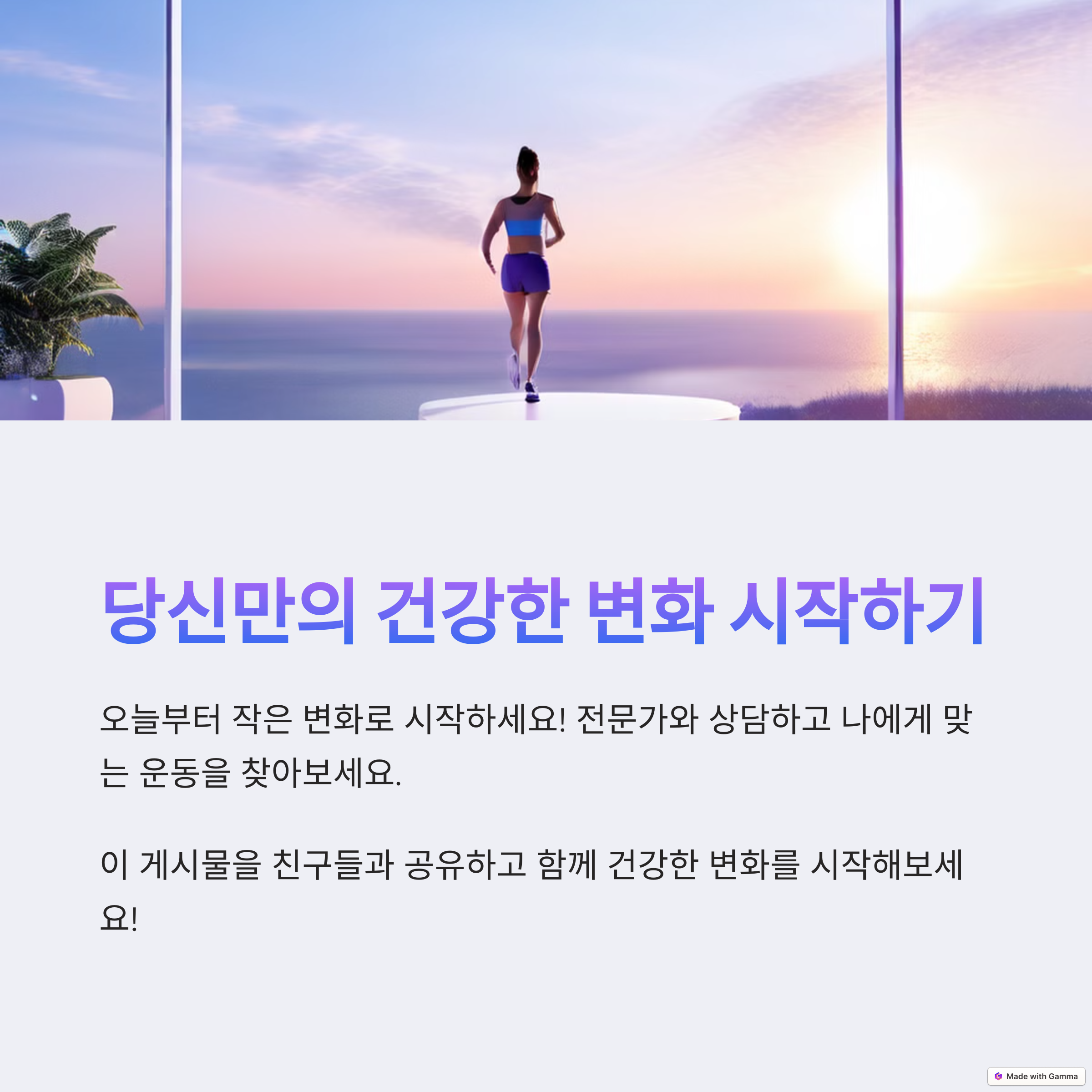 - 🚶 점심시간 산책: 하루 30분의 빠른 걷기