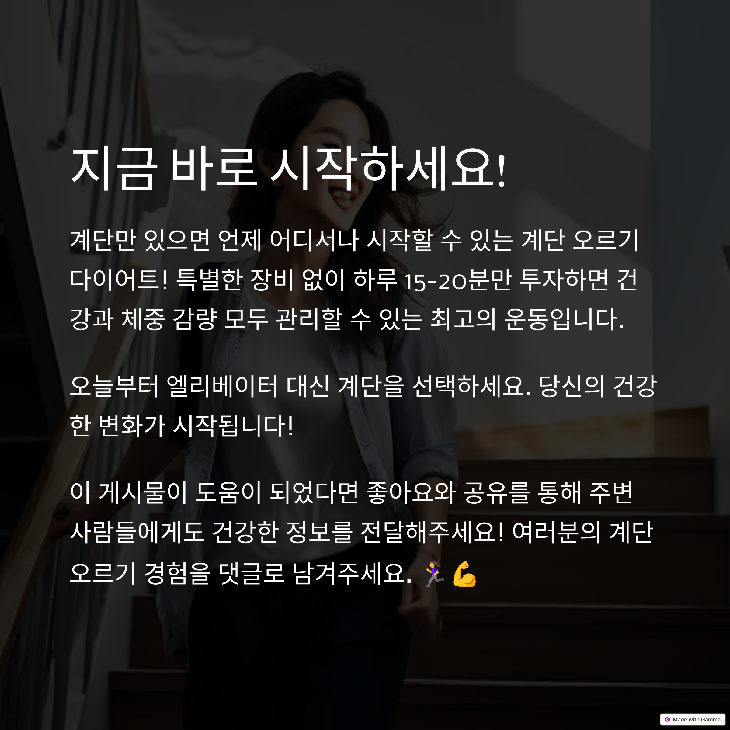 헬스장에 가지 않아도 계단 오르기만으로 체중 감량 효과를 극대화할 수 있습니다.